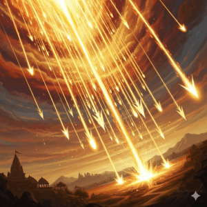 Die Agneyastra (die Waffe des Feuergottes Agni) Diese Waffe erzeugt eine enorme Menge an Feuer und Hitze und kann ganze Wälder oder sogar Landschaften in Brand setzen.