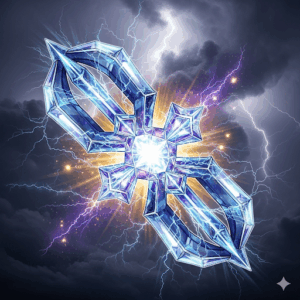 Die Vajra (Donnerkeil des Indra) ⚡️ Der Vajra ist die Waffe des Wettergottes Indra und wird oft als „Donnerkeil“ oder „Blitz“ dargestellt. In manchen Geschichten wurde er aus den Knochen eines Weisen gefertigt und ist unzerstörbar.
